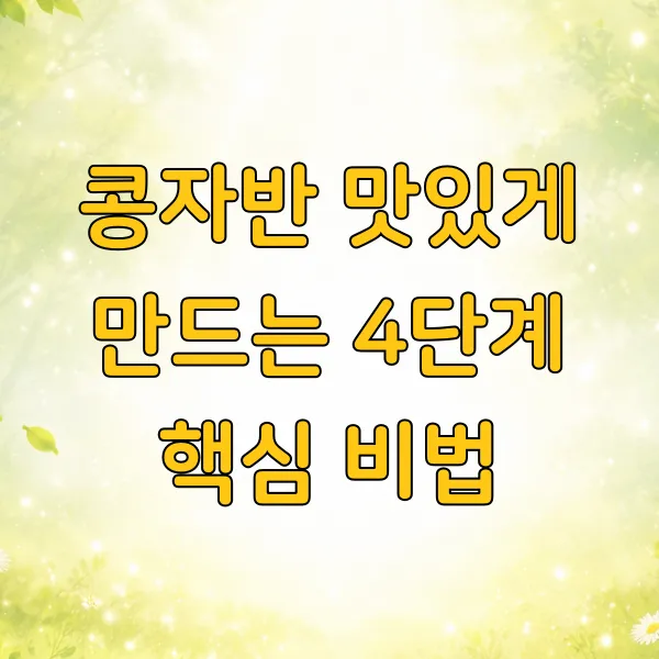 [일반 정보 안내] 본 콘텐츠는 콩자반을 맛있게 만드는 방법에 대한 일반적인 정보를 제공하며, 특정 제품의 효능이나 효과를 보증하지 않습니다. 요리 결과는 재료의 신선도, 조리 환경 및 개인의 조리 방식에 따라 달라질 수 있습니다.